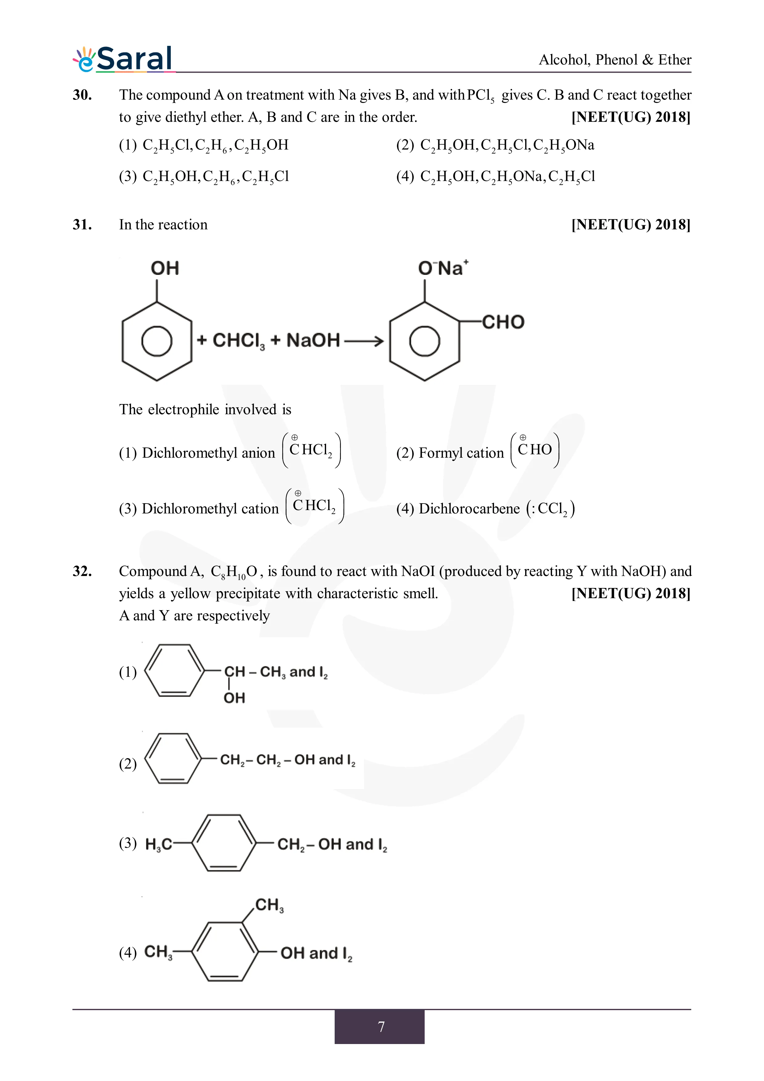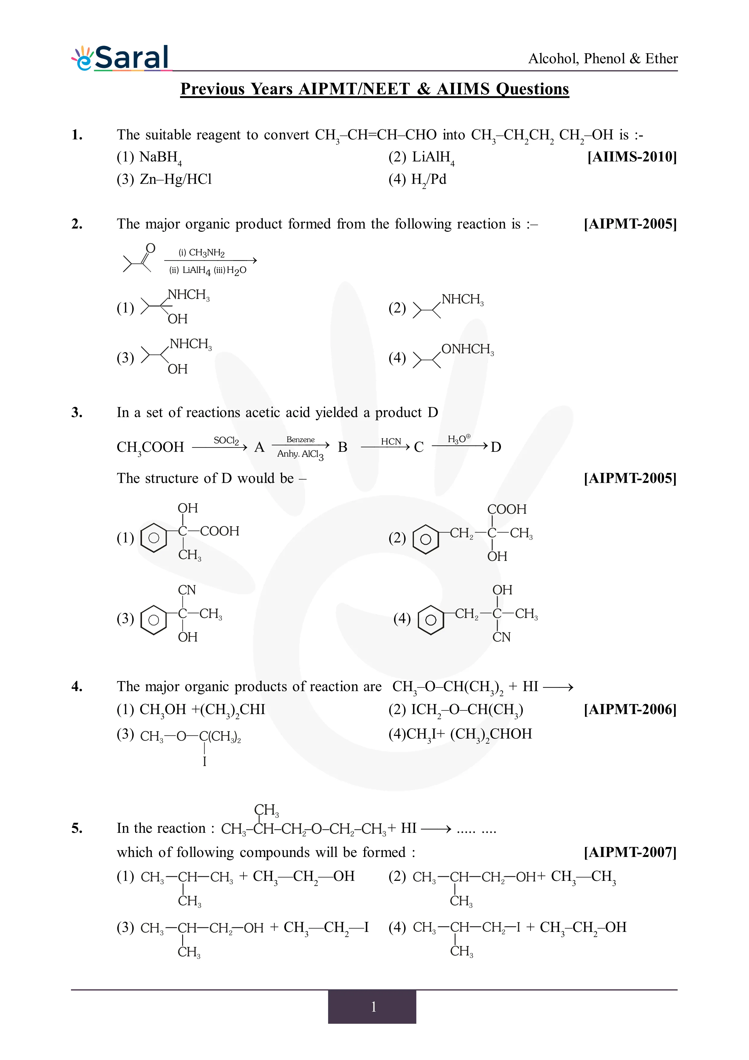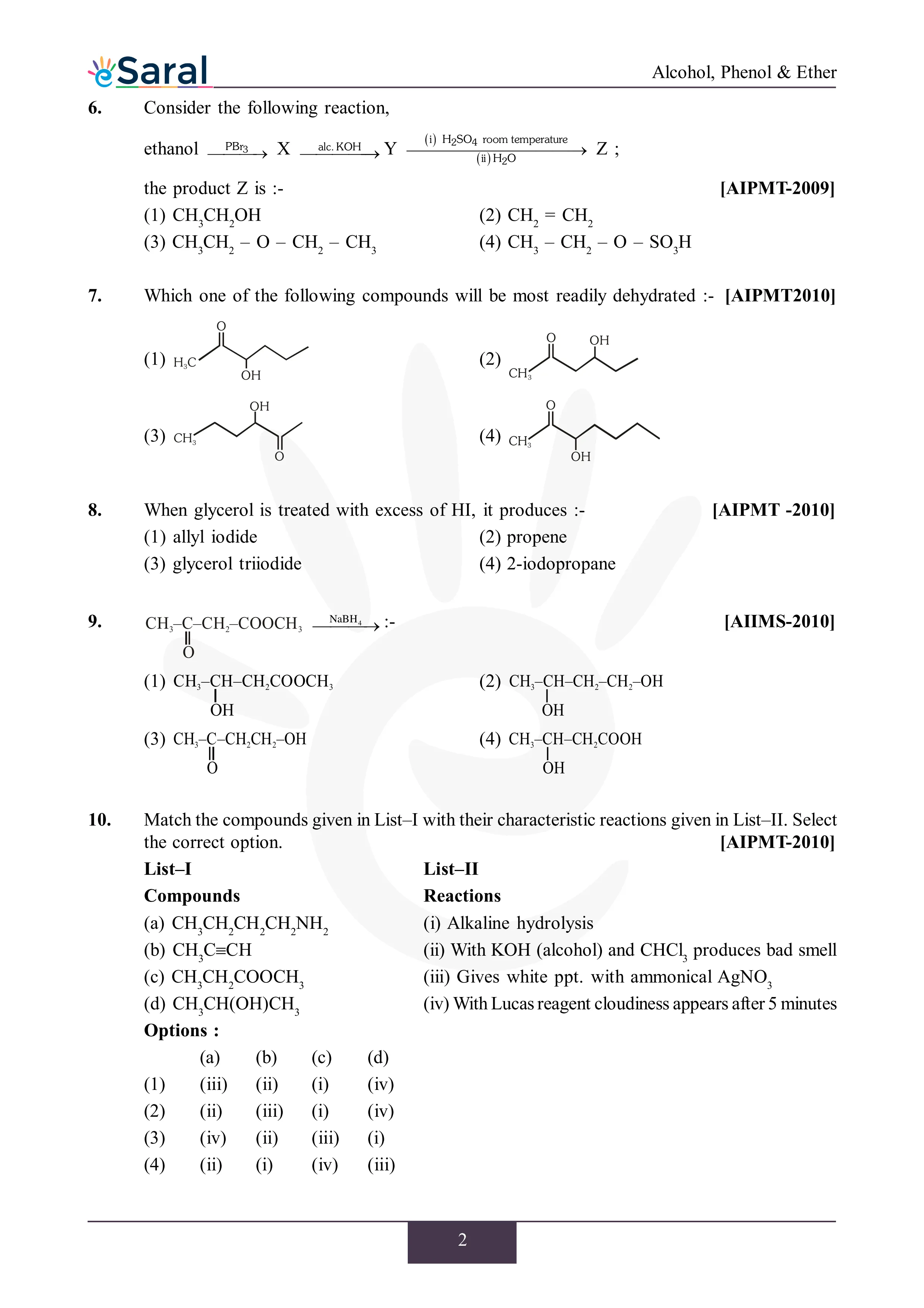 Here you will get Complete Alcohol, Ether & Phenol NEET Previous Year Questions with complete and detailed solutions.