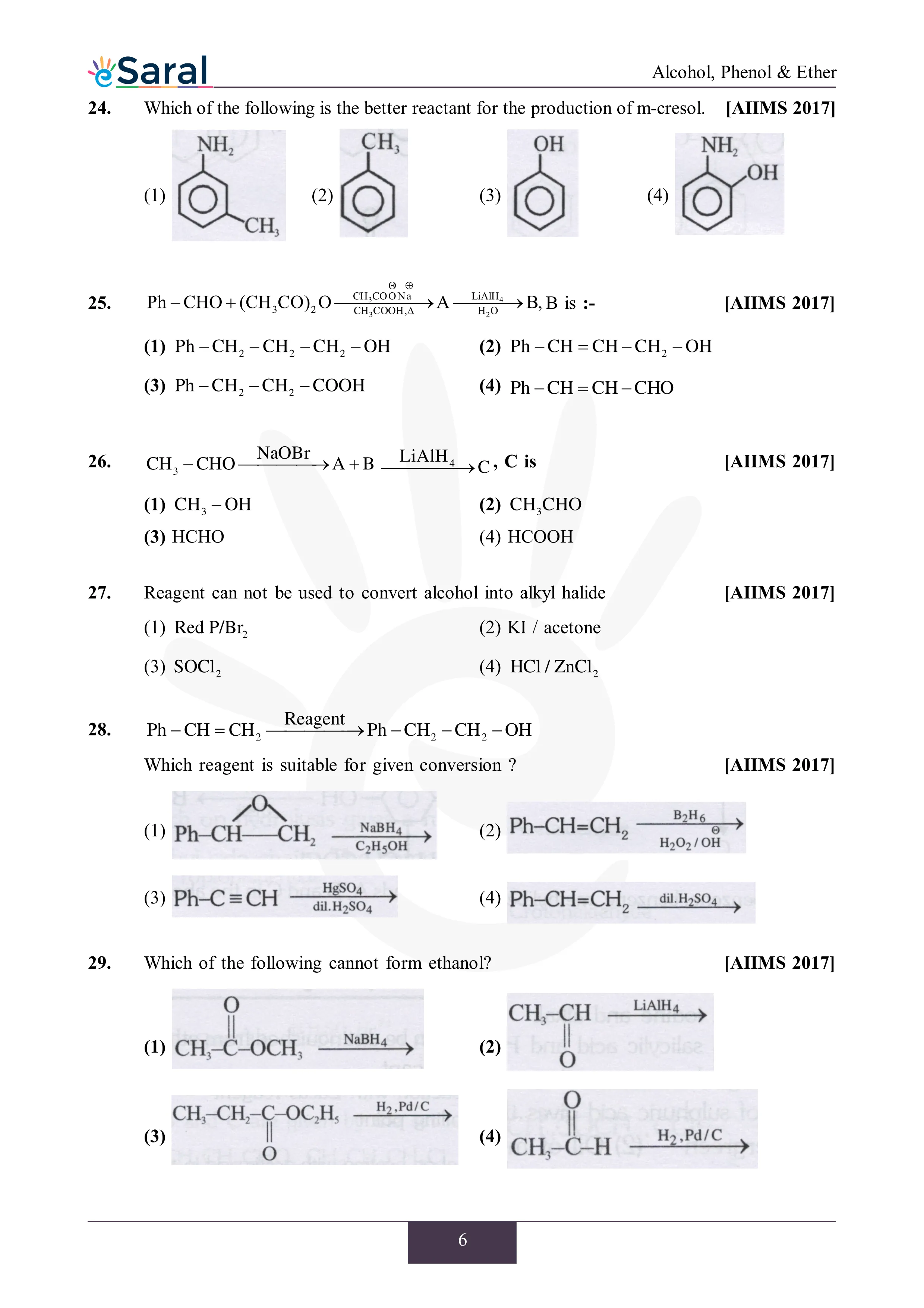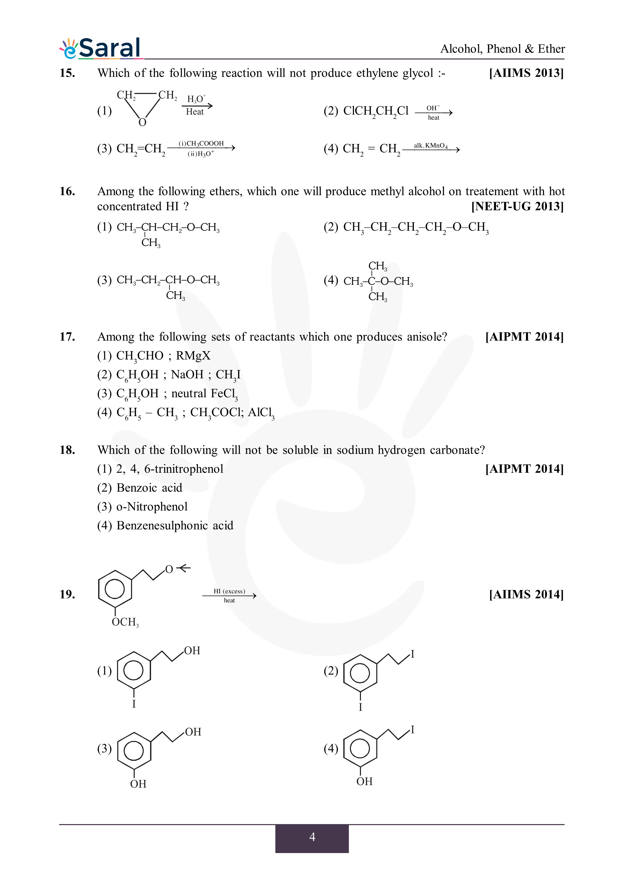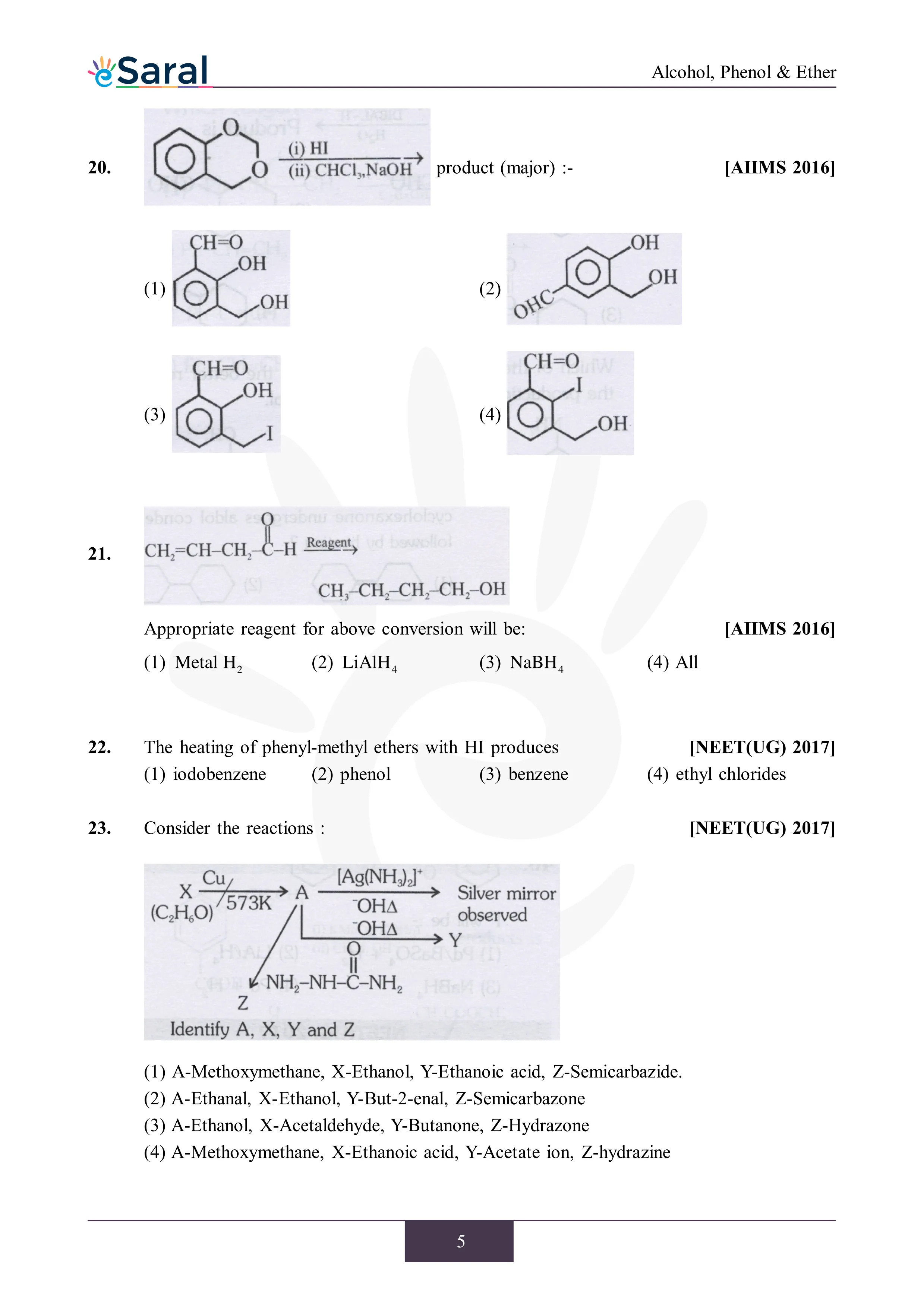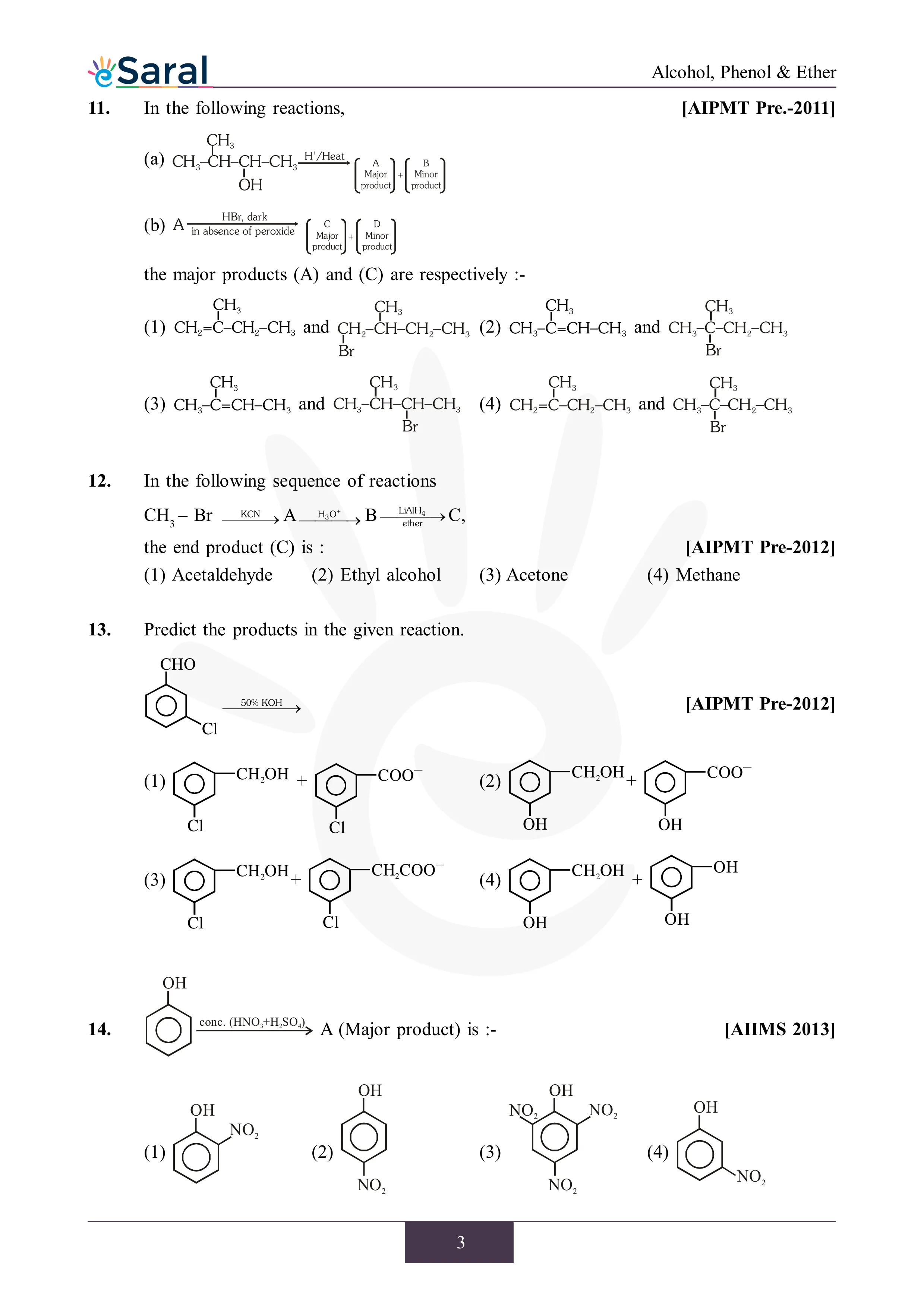 Here you will get Complete Alcohol, Ether & Phenol NEET Previous Year Questions with complete and detailed solutions.