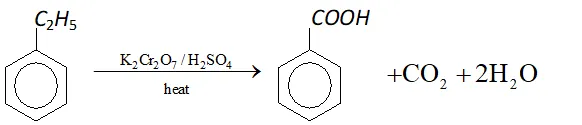 Q. What happens when ethylbenzene is heated with acidified $K_{2} C r_{2} O_{7} ?$