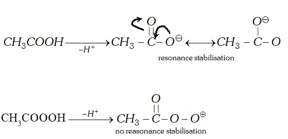 $\left(p K_{a}=8.2\right) .$ It is because after losing $H^{+}$ ion acetic acid molecule gets stabilised by resonance while the peracetate ion does not.