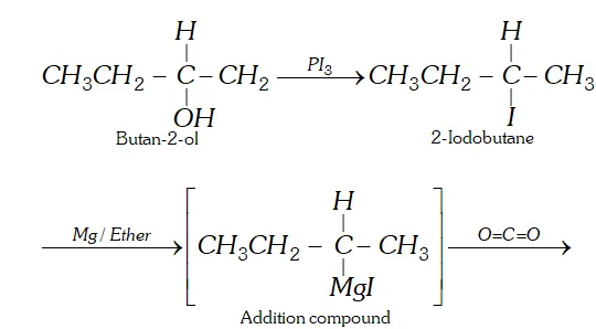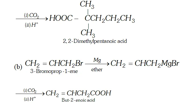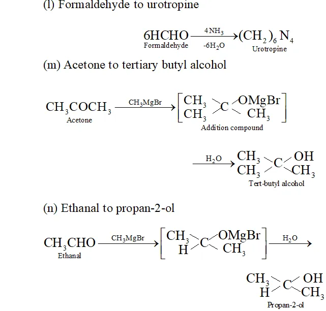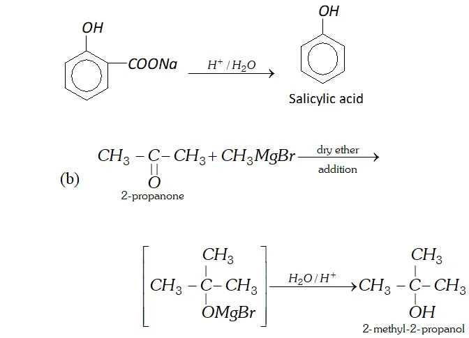 (b) $\quad 2$ -propanone into 2 -methyl- 2 -propanol.
