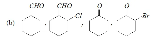 (a) $\mathrm{CH}_{3} \mathrm{CHO},\left(\mathrm{CH}_{3}\right)_{2} \mathrm{CO}, \mathrm{HCHO}, \mathrm{CH}_{2} \mathrm{ClCOCH}_{3}, \mathrm{CH}_{2} \mathrm{ClCHO}$