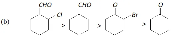 (a) $\mathrm{HCHO}>\mathrm{CH}_{2} \mathrm{ClCHO}>\mathrm{CH}_{3} \mathrm{CHO}>\mathrm{CH}_{2} \mathrm{ClCOCH}_{3}>\mathrm{CH}_{3} \mathrm{COCH}_{3}$