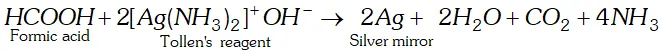 carboxyl group $(\mathrm{COOH}) .$ Therefore, it is expected to behave as reducing agent also and reduces Tollens to form a shining mirror.