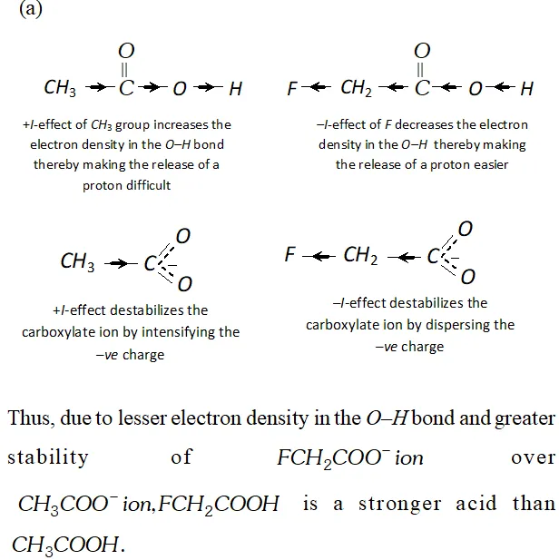 (b) The acidic strength depends upon (i) nature of $+$ I effect