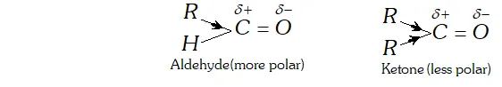 Ans. In the carbonyl group $(>C=O),$ the $\pi$ -electron pair is loosely held and can be readily shifted to the oxygen atom. It is not the case with the alcoholic $(O-H)$ group. Therefore, carbonyl compounds are more polar and have higher dipole moment values $(2.3-2.8 D)$ than the alcohols $(1.6-1.8 D)$