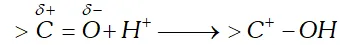 polarised and nuleophilic addition of $H^{\delta+}-C N^{\delta-}$ at carboxyl