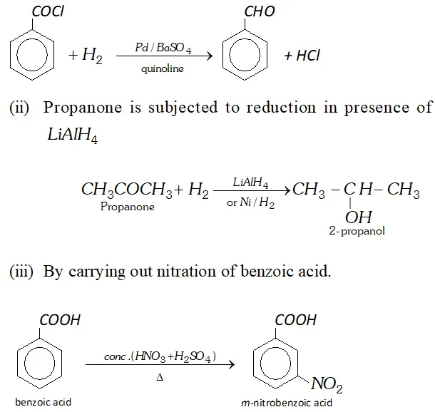 Ans. (a) (i) Benzoyl chloride is subjected to Rosenmund reduction.