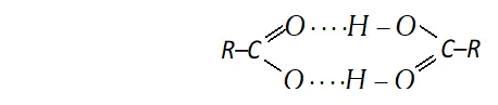 (iii) Carboxylic group (-COOH) in acids is highly polar and carboxylic acid, generally, exists as dimers containing two hydrogen bonds each as shown below.