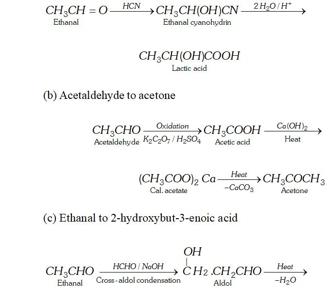 (a) Ethanal to lactic acid