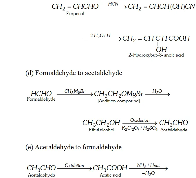 (d) Formaldehyde to acetaldehyde