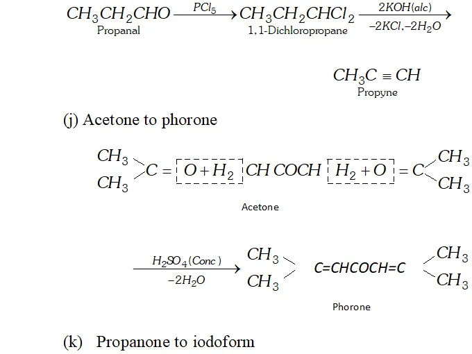 (k) Propanone to iodoform