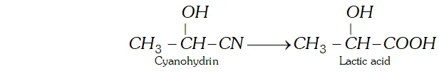 Ans. (a) Cyanohydrin is a compound which contains both OH and CN group. For example, Lactic acid can be obtained by hydrolysis of cyanohydrin.
