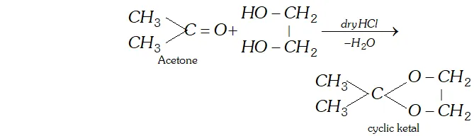 (d) Ketal is a cyclic compound obtained by reaction of acetone with ethylene glycol.