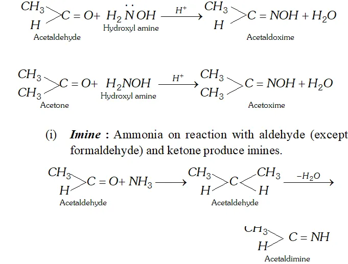(h) Oxime : Aldehyde and Ketones react with hydroxylamine to form oximes.