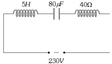 (a) Determine the source frequency which drives the circuit in resonance. (b) Obtain the impedance of the circuit and the amplitude of current at the resonating frequency. (c) Determine the rms potential drops across the three elements of the circuit (d) How do you explain the observation that the algebraic sum of the voltages across the three elements obtained in (c) is greater than the supplied voltage