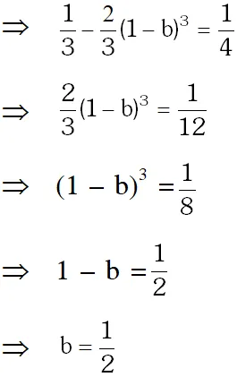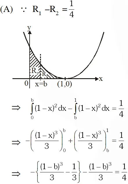 parts $\mathrm{R}_{1}(0 \leq \mathrm{x} \leq \mathrm{b}) \mathrm{d}$ and $\mathrm{R}_{2}(\mathrm{b} \leq \mathrm{x} \leq 1)$ such that $\mathrm{R}_{1}-\mathrm{R}_{2}=\frac{1}{4} .$ Then $\mathrm{b}$ equals