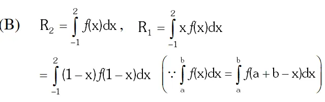 (B) Let $f:[-1,2] \rightarrow[0, \infty)$ be a continuous function such that $f(\mathrm{x})=f(1-\mathrm{x})$ for all $\mathrm{x} \in[-1,2]$. Let $\mathrm{R}_{1}=\int_{-1}^{2} \mathrm{x} f(\mathrm{x}) \mathrm{d} \mathrm{x}$, and $\mathrm{R}_{2}$ be the area of the region bounded by $\mathrm{y}=f(\mathrm{x}), \mathrm{x}=-1, \mathrm{x}=2$,and the x-axis. Then-