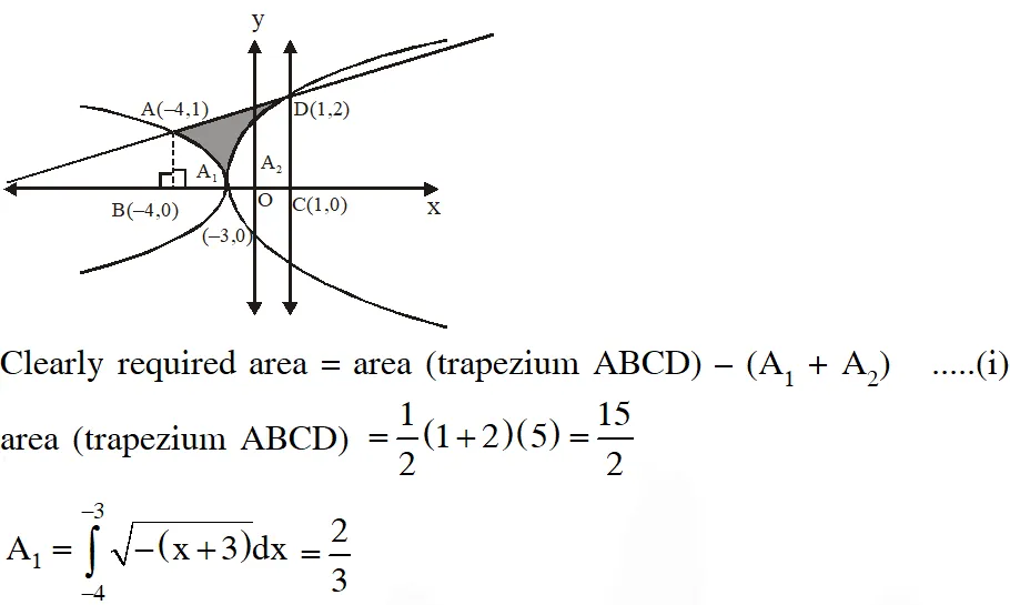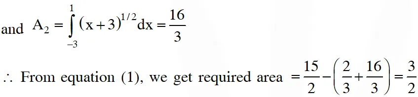 Q. Area of the region $\{ \left(\mathrm{x}, \mathrm{y}) \in \mathbb{D}^{2}: \mathrm{y} \geq \sqrt{|\mathrm{x}+3|, 5 \mathrm{y} \leq \mathrm{x}+9 \leq 15\}}$ is equal to - \right.