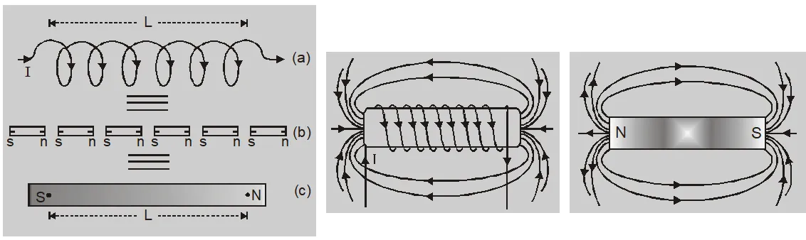 It is clear from the above expression that magnetic moment of a bar magnet is equal to the magnetic moment of an equivalent solenoid that produces the same magnetic field.