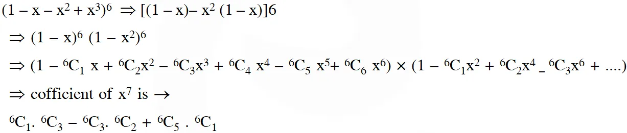 Q. The coefficient of $x^{7}$ in the expansion of $\left(1-x-x^{2}+x^{3}\right)^{6}$ is :-