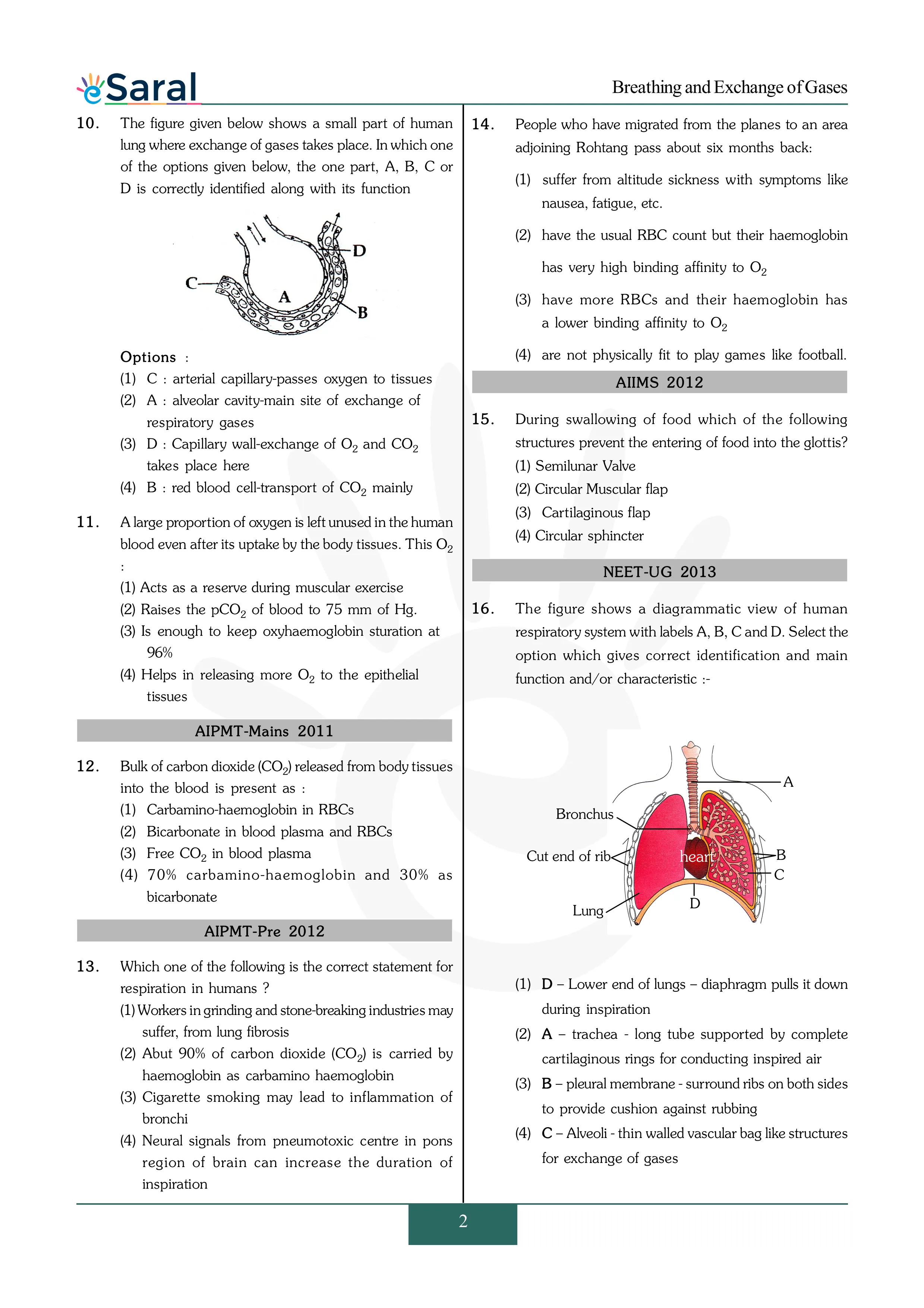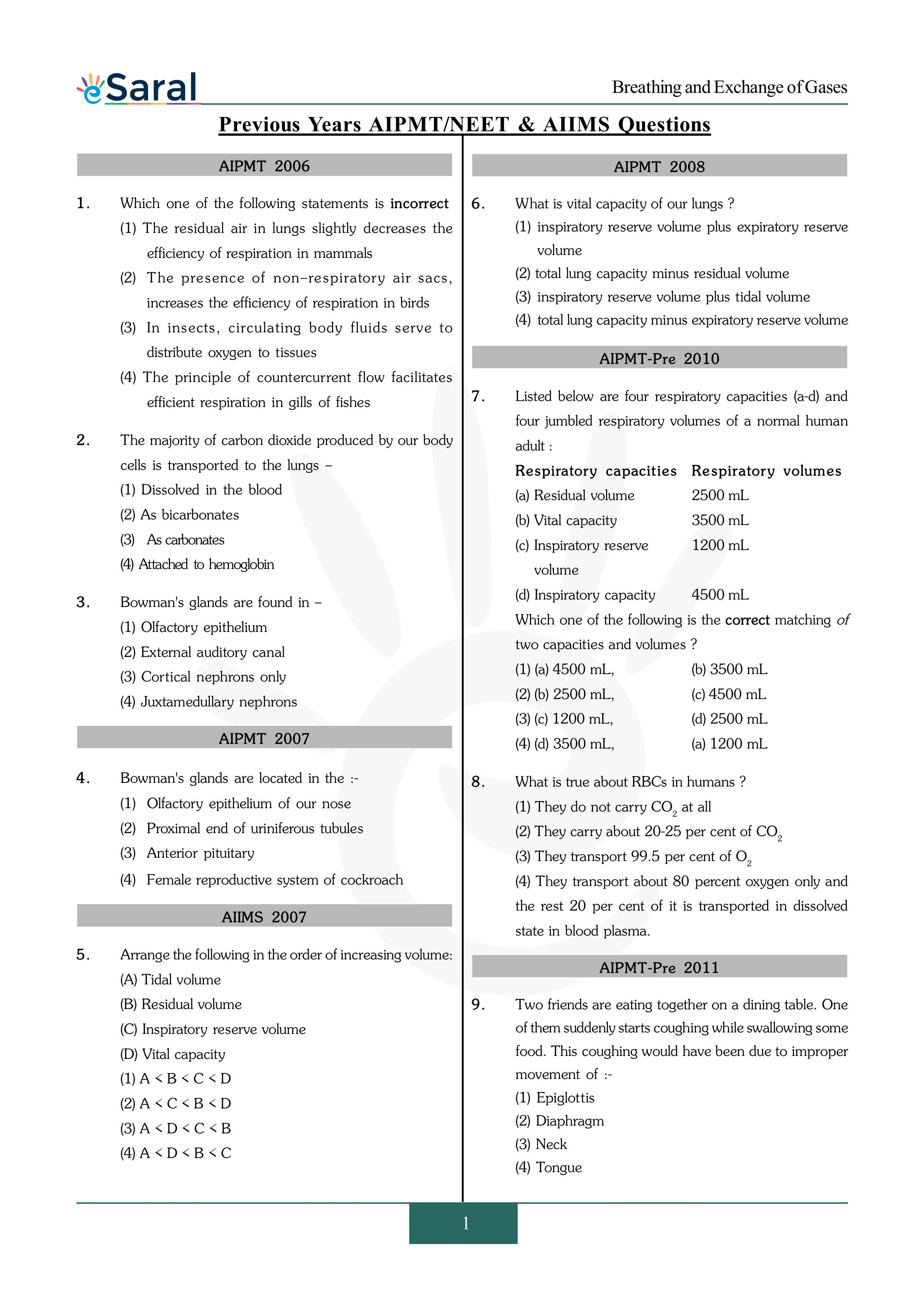 I have a breathing and exchange of gases pyqs year 2008 to 2025