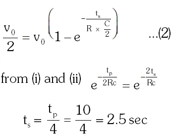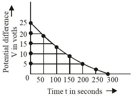 $\Rightarrow \mathrm{R}=\frac{\mathrm{t}}{\mathrm{Cln} 2.5}=\frac{\mathrm{t}}{2.303 \mathrm{Clog} 2.5}$