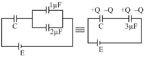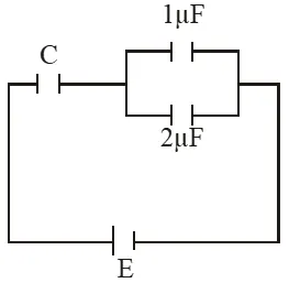 $\mathrm{C}_{\mathrm{eq}}=\frac{3 \mathrm{C}}{3+\mathrm{C}} \quad \mathrm{Q}=\mathrm{Ceq} \mathrm{E}$