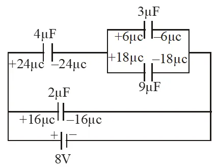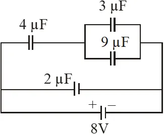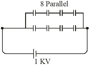 $\Rightarrow \quad \mathrm{C}_{1}=\frac{1}{4}$ for one series. So for $\mathrm{Ceq}$ to be $2 \mu \mathrm{F}, 8$ parallel combinations are required.