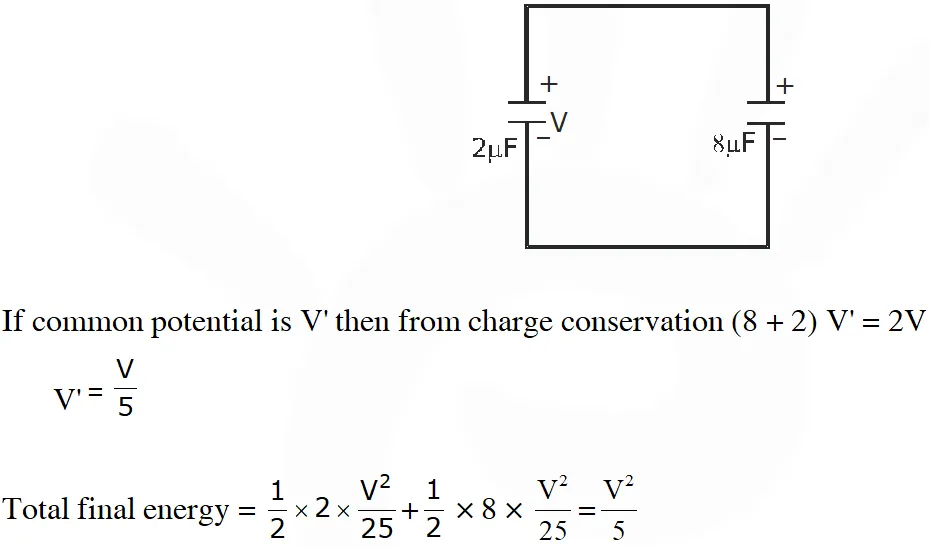Now total heat loss $\left(\mathrm{E}_{\mathrm{D}}\right): \frac{\mathrm{CV}_{0}^{2}}{18}+\frac{\mathrm{CV}_{0}^{2}}{18}+\frac{\mathrm{CV}_{0}^{2}}{18}=\frac{\mathrm{CV}_{0}^{2}}{6}$