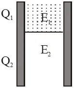 $\frac{\mathrm{Q}_{1}}{\mathrm{Q}_{2}}=\frac{\mathrm{C}_{1}}{\mathrm{C}_{2}}=\frac{\mathrm{K}}{2}$