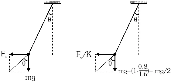 Q. Two identical charged spheres are suspended by strings of equal lengths. The strings make an angle of 30° with each other. When suspended in a liquid of density 0.8 g $\mathrm{cm}^{-3}$, the angle remains the same. If density of the material of the sphere is $1.6 \mathrm{g} \mathrm{cm}^{-3}$, the dielectric constant of the liquid is : (1) 1 (2) 4 (3) 3 (4) 2 [AIEEE - 2010]