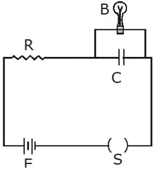 Therefore K =2 Q. A resistor 'R' and $2 \mu \mathrm{F}$ capacitor in series is connected through a switch to 200 V direct supply. Across the capacitor is a neon bulb that lights up at 120 V. Calculate the value of R to make the bulb light up 5s after the switch has been closed. ($\log _{10}$ 2.5 = 0.4) (1) $2.7 \times 10^{6} \Omega$ (2) $3.3 \times 10^{7} \Omega$ (3) $1.3 \times 10^{4} \Omega$ (4) $1.7 \times 10^{5} \Omega$ [AIEEE-2011]