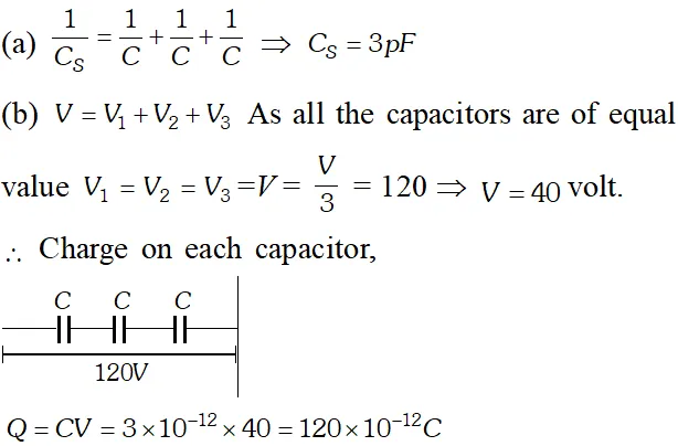 Q. Three capacitors each of capacitance $9 p F120 V$ supply. [NCERT]