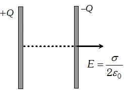 A. Suppose a positive charge is given to one plate and a negative charge to the other plate. The electric field due to only the positive plate is