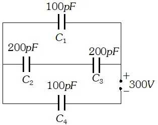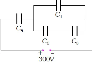 Q. Four capacitors are connected as shown in the figure given below :