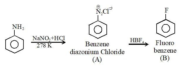 (4) Benzene diazonium chloride and fluorobenzene