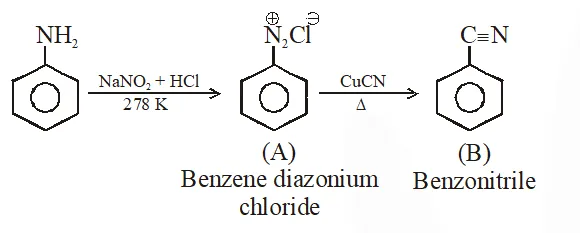 (2)Benzene diazonium chloride and benzonitrile