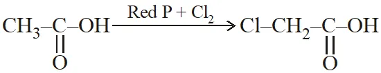 Q. In the presence of a small amount of phosphorous, aliphatic carboxylic acids react with chlorine or bromine to yield a compound in which - hydrogen has been replaced by halogen. This reaction is known as :