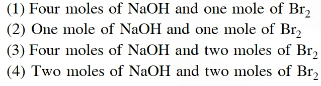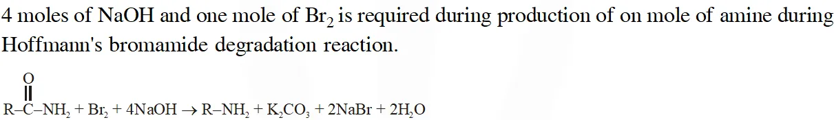 Q. In the Hofmann bromamide degradation reaction, the number of moles of NaOH and $\mathrm{Br}_{2}$ used per mole of amine produced are :