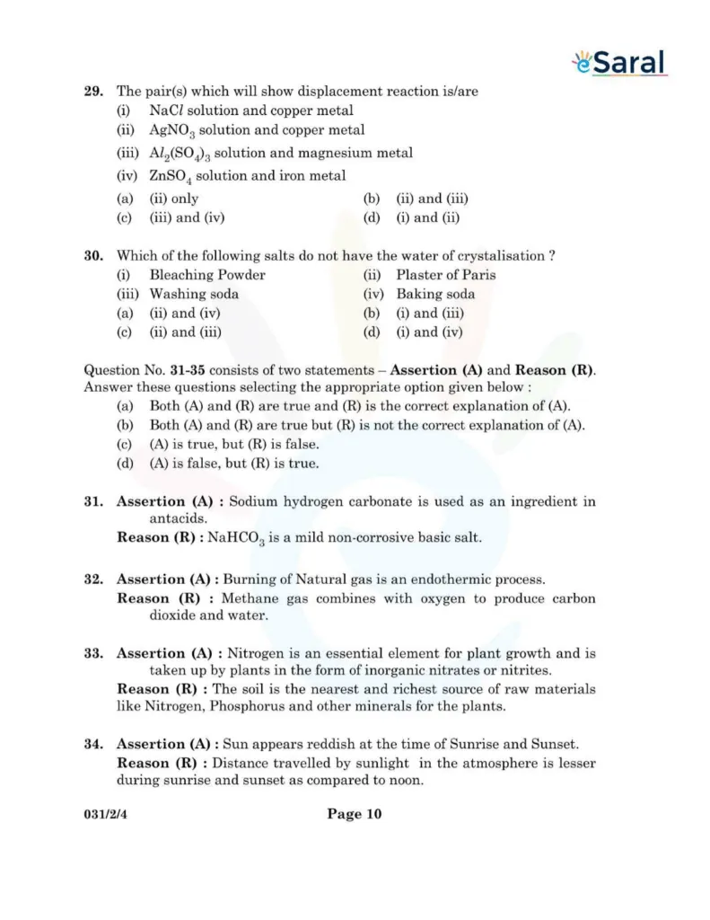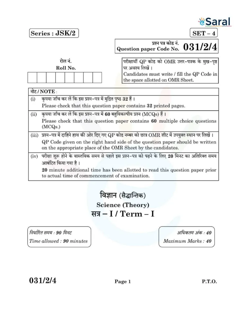 CBSE 10th Science Question Paper Term 1 Exam 2021-22 - eSaral