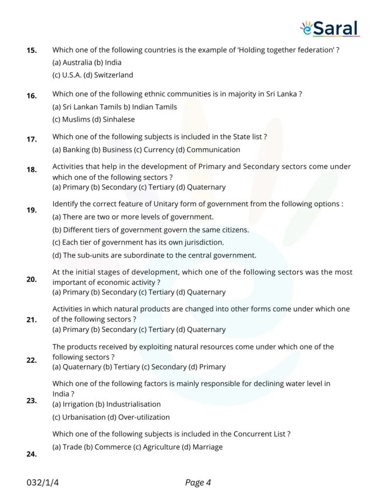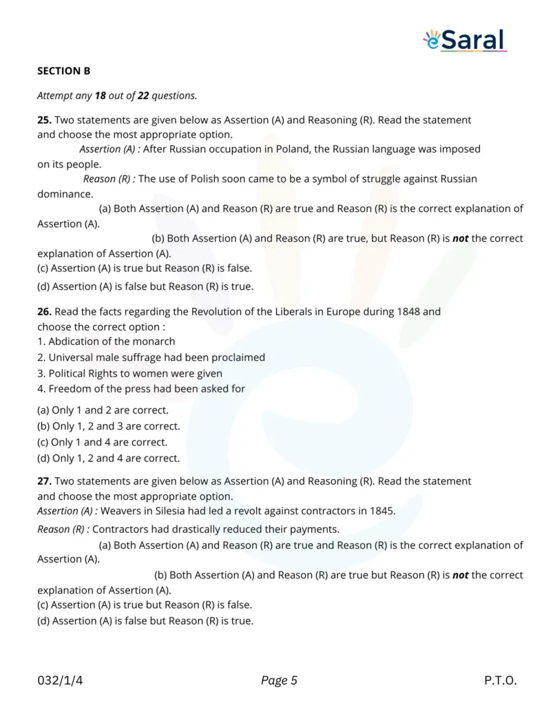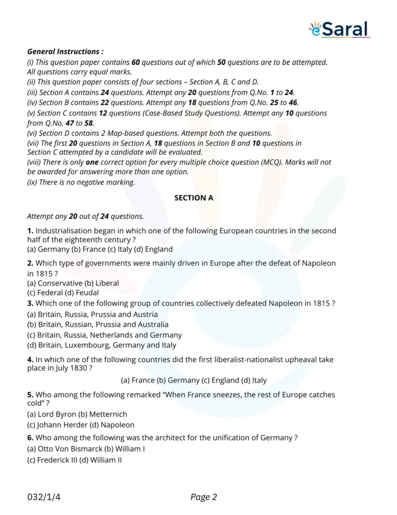 CBSE Class 10 Social Science Question Paper Term 1 Exam 2021-22 - eSaral