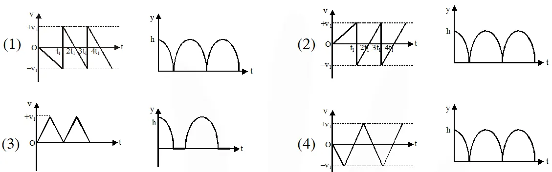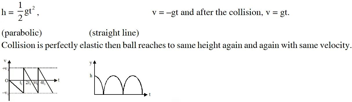 Q. Consider a rubber ball freely falling from a height h = 4.9 m onto a horizontal elastic plate. Assume that the duration of collision is negligible and the collision with the plate is totally elastic. Then the velocity as a function of time and the height as a function of time will be :-