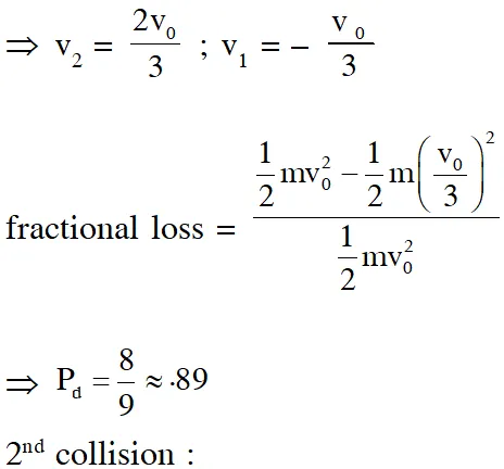 $\% \Delta \mathrm{K}=\frac{\mathrm{K}_{1}-\mathrm{K}_{\mathrm{f}}}{\mathrm{K}_{\mathrm{i}}} \times 100=\frac{5 \mathrm{mv}^{2} / 3}{3 \mathrm{mv}^{2}} \times 100=\frac{5}{9} \times 100=56 \%$