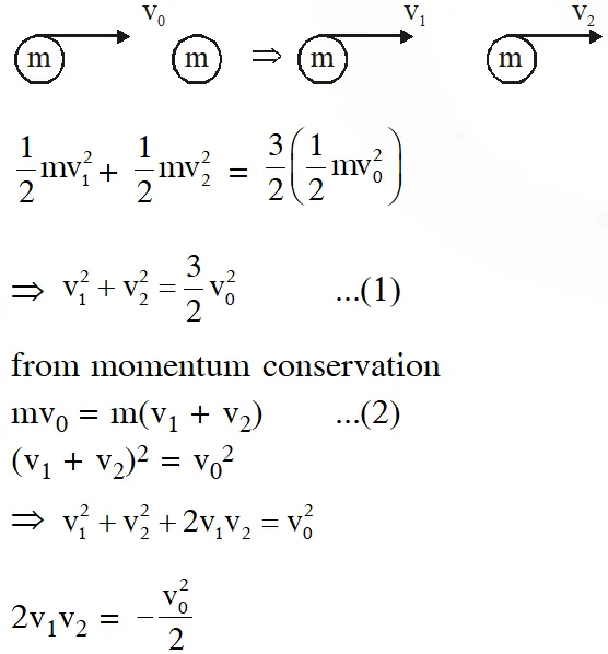 Q. In a collinear collision, a particle with an initial speed $\mathrm{V}_{0}$ strikes a stationary particle of the same mass. If the final total kinetic energy is 50% greater than the original kinetic energy, the magnitude of the relative velocity between the two particles, after collision, is :