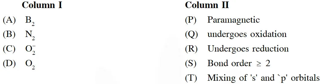 Q. Match each of the diatomic molecules in Column I with its property / properties in Column II.
