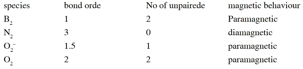 Q. Assuming that Hund's rule is violated, the bond order and magnetic nature of the diatomic molecule $\mathrm{B}_{2}$ is
