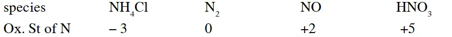 (D) $\mathrm{NO}, \mathrm{HNO}_{3}, \mathrm{NH}_{4} \mathrm{Cl}, \mathrm{N}_{2}$