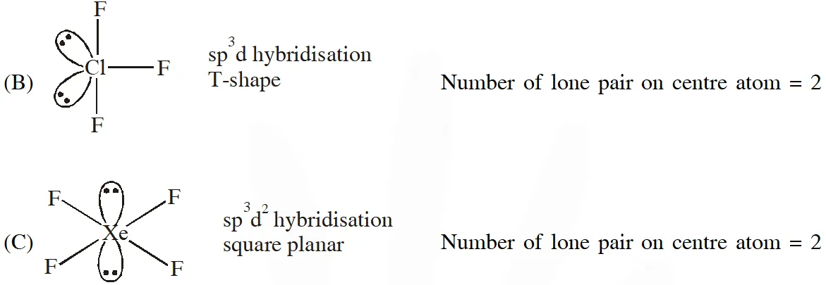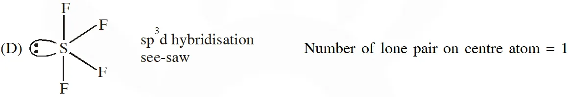 $\mathrm{sp}^{3} \mathrm{d} \quad$ See-Saw shape