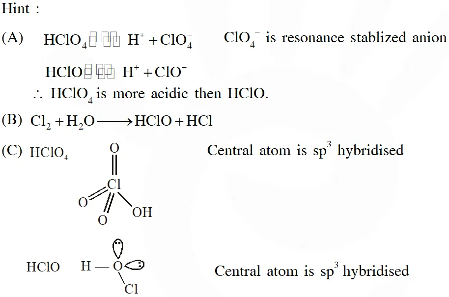 Q. The correct statements(s) about the oxoacids, $\mathrm{HClO}_{4}$ and HClO, is (are) –